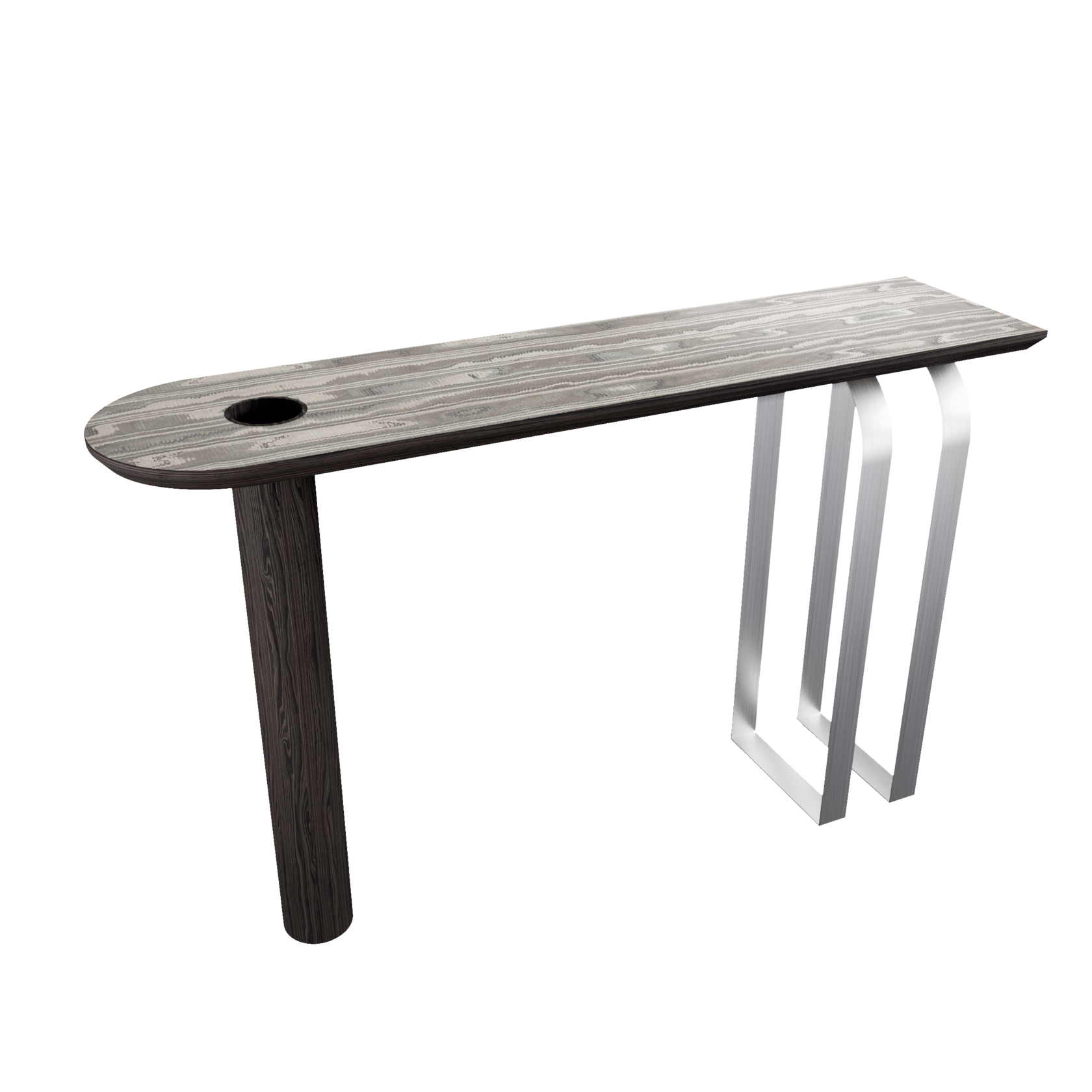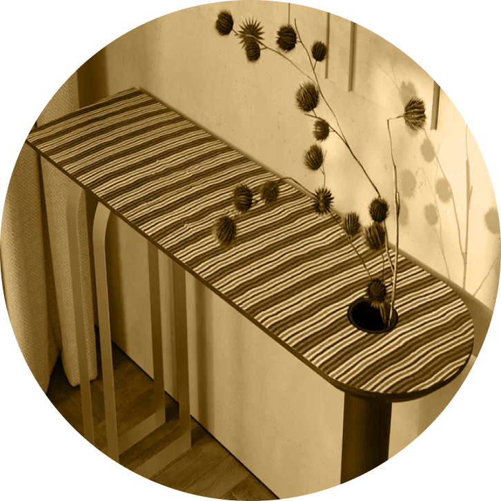 Мы нашли подход к созданию идеального украшения интерьера. Металлические ленточные штрипсы рефлексируют окружающие цвета интерьера, создавая воздушность, однако при этом являются прочным основанием консоли. Трубчатая колонна в цвет интерьера включает в себя вазон для сухоцветов. Художественный шпон высшего качества на округленной с одной стороны столешнице создает акцент и притягивает внимание. Эта консоль уже не просто мебель, это предмет искусства в вашем доме.